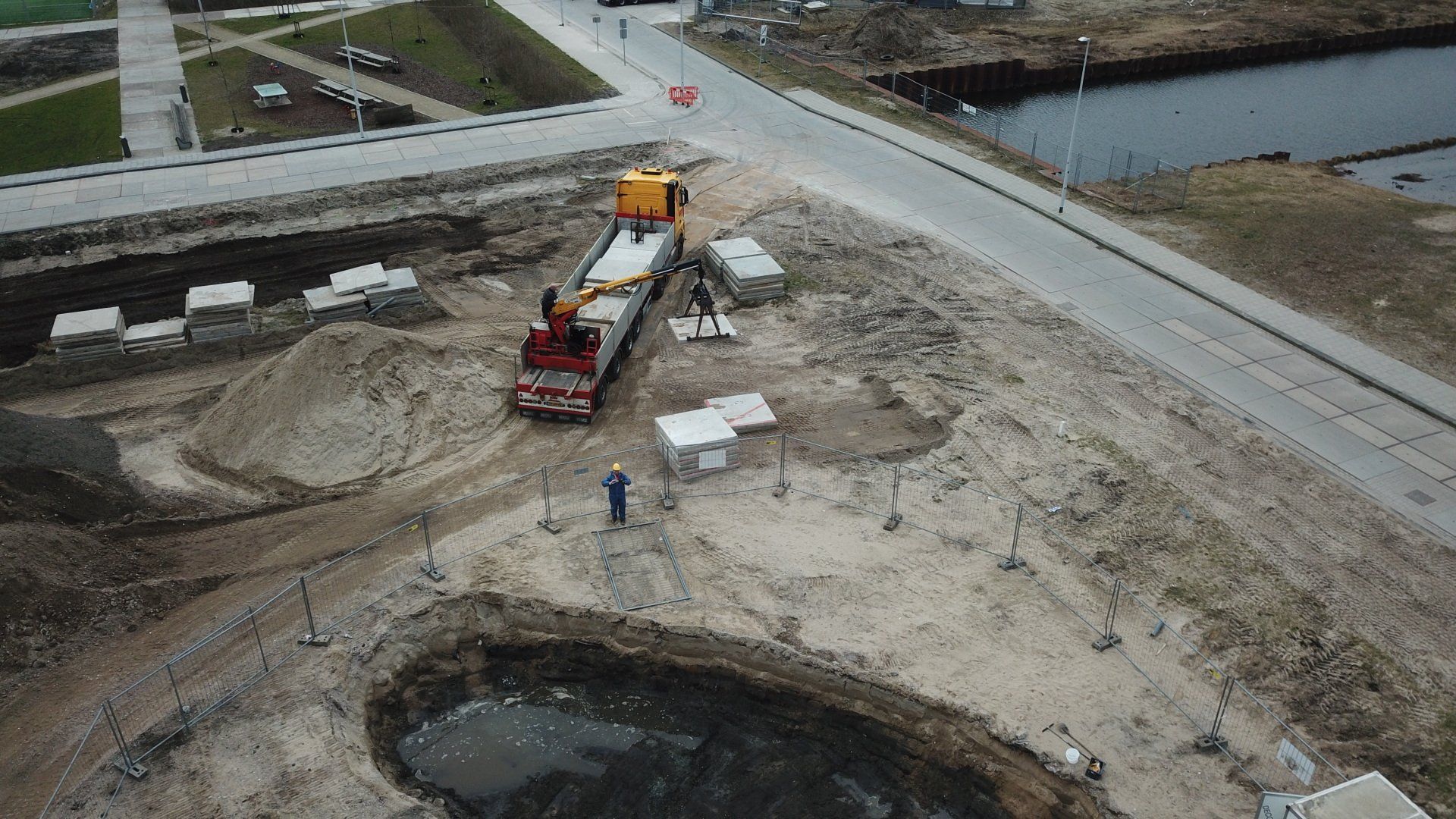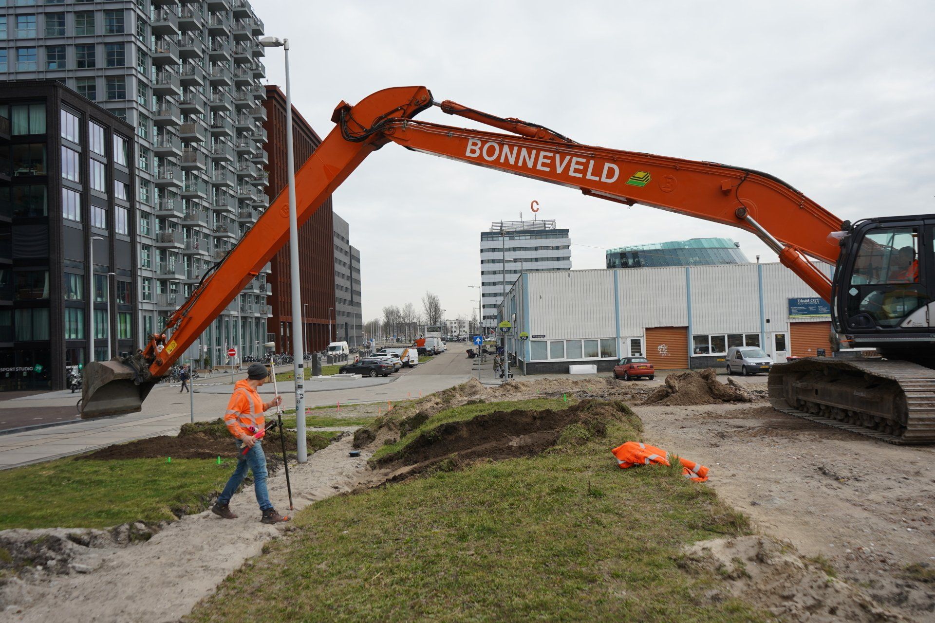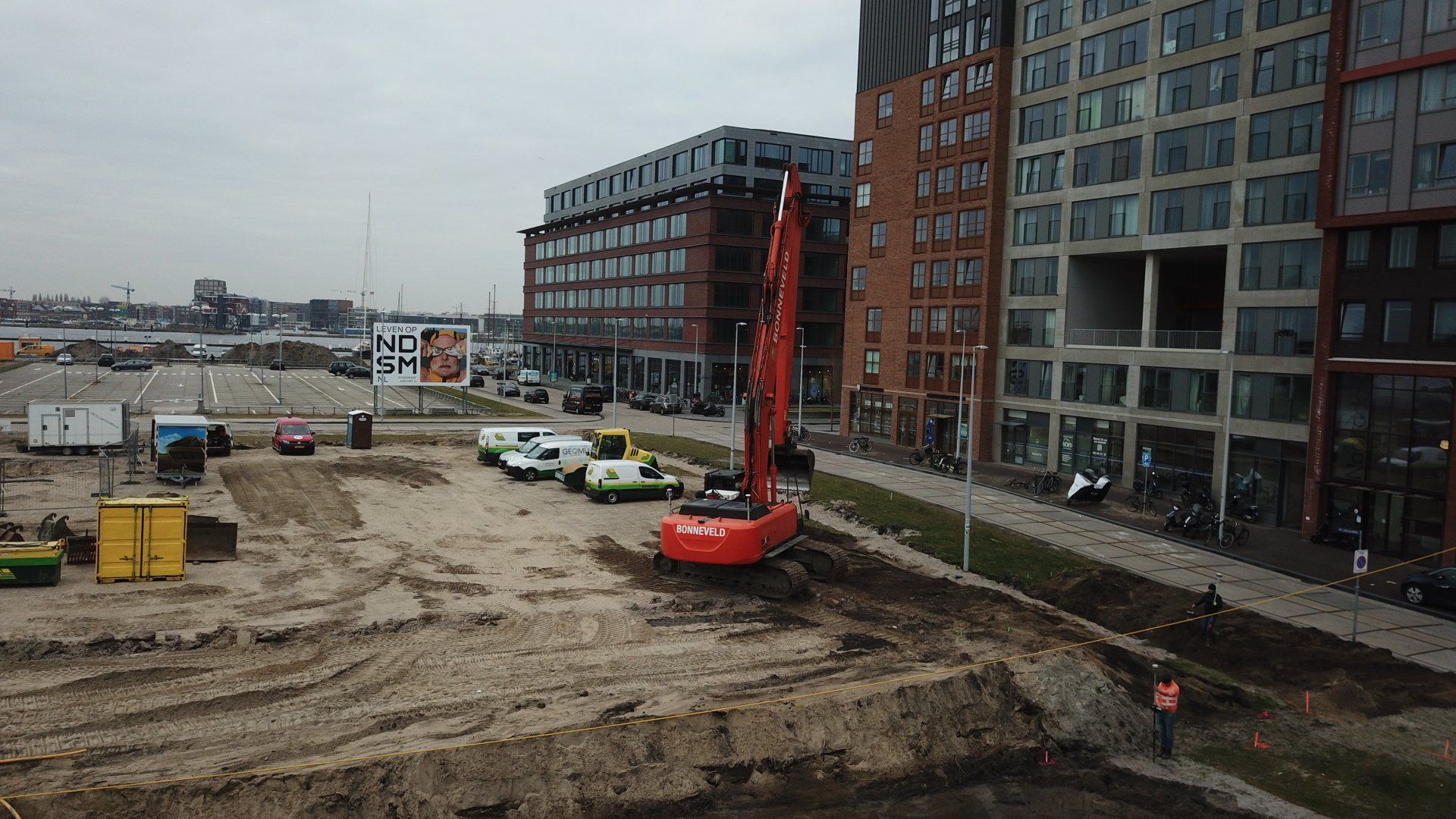 De Silo’s op Zeeburgereiland krijgen een nieuwe bestemming. Van industrieel erfgoed naar een levendige ontmoetingsplek met cultuur, horeca en een groen dakpark, Hier komt modern design samen in een duurzame toekomst. In opdracht van Vink Bouw mochten we de grondwerkzaamheden en de bouwplaatsinrichting verzorgen van de transformatie van de drie voormalige waterzuiveringssilo’s. Onderdeel van de bouwplaatsinrichting is de tijdelijke demping van een watergang om zo voldoende bouwterrein beschikbaar te maken. De transformatie van de silo’s is een project met hoge duurzaamheidsambities. Het ontwerpcertificaat BREEAM Outstanding is al binnen en ook de uitvoering ligt langs een strenge duurzaamheidslat. En Bonneveld draagt daar letterlijk en figuurlijk haar steentje aan bij, Een deel van het puingranulaat is afkomstig van een breker in de buurt, een belangrijk deel is afkomstig uit Delft van een ander werk van Vink Bouw. Aan het einde van de rit gaan we de bouwplaats weer opruimen. Puingranulaat gaat dan weer door naar een andere bouwplaats, en als daar geen plek voor is, naar de breker. Vloerplaten die goed genoeg zijn, gebruiken we ook zo lang mogelijk door. Is de bouwkeet weg dan zullen we als laatste werk de watergang terugbrengen in oude staat en met de grond het bouwterrein opvullen.
