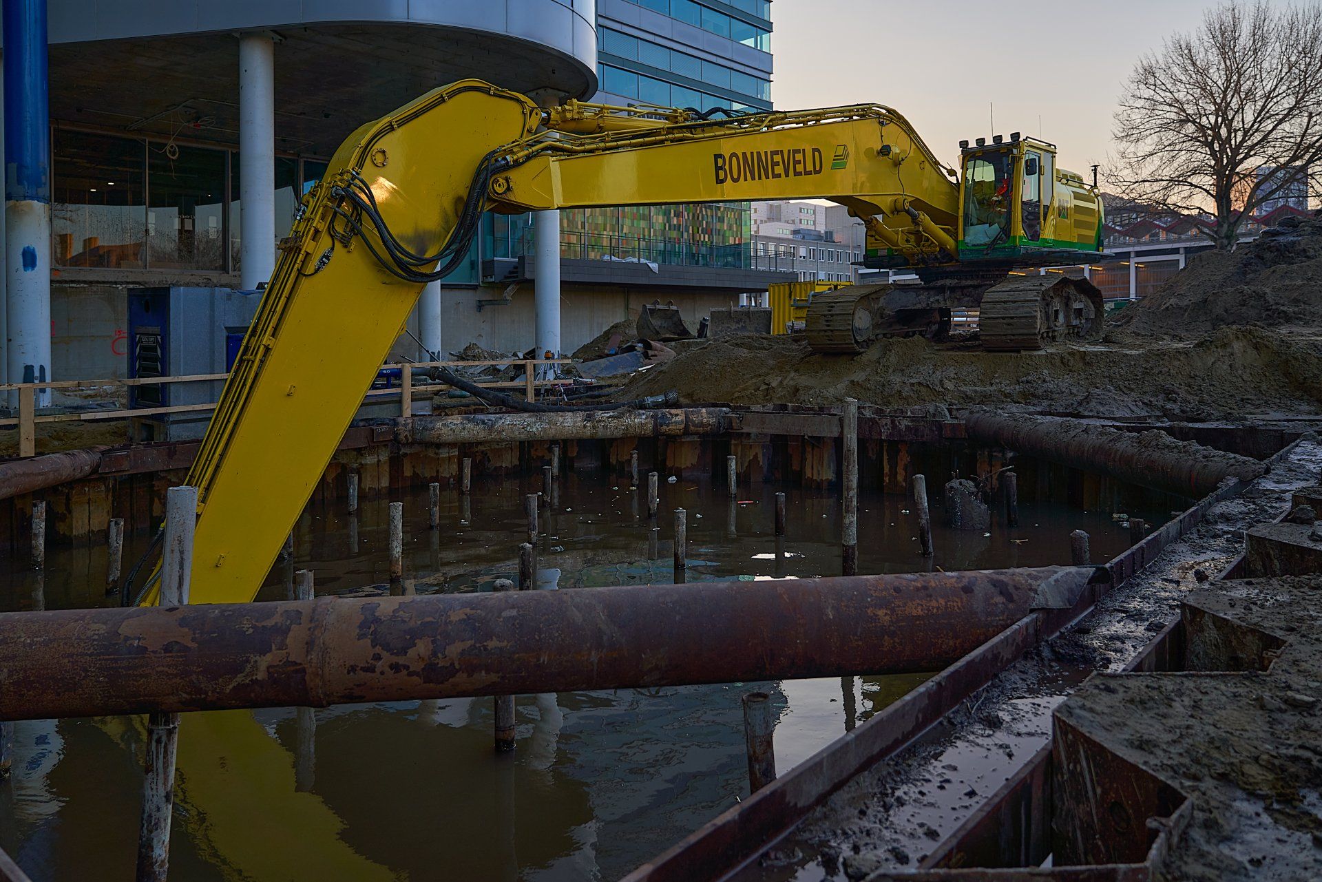 Werk met werk maken bij HIGH5 In Haarlem is gestart met de eerste fase van nieuwbouwproject HIGH5, onderdeel van gebiedsontwikkeling Schalkwijk Centrum. Bonneveld staat in voor de bouwplaatsinrichting en het ontgraven van de bouwkuip. Door een slimme fasering maakt de specialistisch grondwerker in de utiliteits- en infrabouw ‘werk met werk’ en blijft de aan- en afvoer van grondstoffen tot een minimum beperkt. HIGH5 is een ontwikkeling van HBB Groep en Hoorne Vastgoed , die gefaseerd vijf gebouwen realiseren, goed voor in totaal 569 appartementen. Voor HIGH5 hebben we nu het grondwerk van drie van de vijf gebouwen in opdracht en hebben reeds de bouwplaatsinrichting verzorgd en de toegang naar de bouwplaats gemaakt middels een grote overkluizing. Ook de bemaling valt binnen onze scope, zowel de freatische- als spanningsbemaling. Al met al voor ons dus een behoorlijk omvangrijk project. Overkluizing Rondom het bouwterrein bevindt zich een watergang. Voor een betere bereikbaarheid van het bouwterrein hebben we een overkluizing gemaakt tussen de Briandlaan en de Costa Del Sol. Daartoe hebben we begin oktober 2024 een onderheide constructie gemaakt, bestaande uit drie stalen duikerbuizen van 21 meter lang en 142 centimeter in doorsnede, gefundeerd op houten palen. Hierop is de verharding aangebracht in de vorm van 74 industrieplaten. De overkluizing zelf is met een breedte van 10 meter royaal bemeten en bedoeld voor bouwverkeer, calamiteitendiensten en bezoekers aan de sportschool in de tijdelijke huisvesting op het terrein. Het bouwverkeer wordt uiteraard gescheiden van het overige verkeer door betonnen barriers. Omvangrijke bouwplaatsinrichting Voor een vlakke en stofvrije bouwplaats heeft Bonneveld het terrein rondom vlak getrokken en afgedekt met in totaal ruim duizend industrieplaten. Aan de zijde van de Haarlemmervaart is tevens een tijdelijke damwand aangebracht en hebben we deze gedempt om voldoende werkruimte te creëren voor de realisatie van de woontorens. Verder hebben we een berlinerwand aangebracht zodat de aannemer na het ontgraven op een veilige manier de fundaties kan realiseren. Slim faseren De bouwkuip voor de eerste drie woontorens betreft een oppervlakte van een kleine 6.000 m2. Onze aanpak is erop gericht om grond zoveel mogelijk op locatie te houden. Grond wordt weliswaar op het bouwterrein verplaatst, maar later weer hergebruikt. Op die manier zijn we bijvoorbeeld in staat om de heilaag zo economisch mogelijk aan te brengen. Bij de eerste fase ontgraven we tussen de ruim 700 palen door met ons specialistische materieel uitgerust met GPS-apparatuur. Uiteindelijk moeten we 7.500 m3 grond afvoeren, maar wordt er twee keer zoveel ontgraven. Dat blijft dus allemaal op het project. Kwestie van slim plannen en faseren. Bonneveld is eind januari 2025 gestart met het ontgraven van de bouwput.