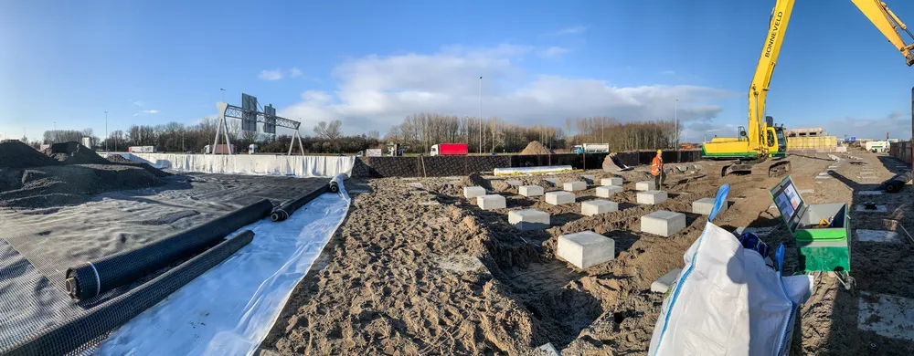 Een paalmatras bestaat uit een raster van korte, dicht op elkaar geplaatste betonpalen. Daarboven wordt een gewapende laag van geotextielen en granulaat aangebracht. Door de zogenoemde boogwerking binnen deze laag wordt de belasting gelijkmatig verdeeld over de palen. Het resultaat is een direct belastbare ondergrond met minimale restzettingen wat ideaal past voor situaties waar snelheid, betrouwbaarheid en duurzaamheid essentieel zijn.
