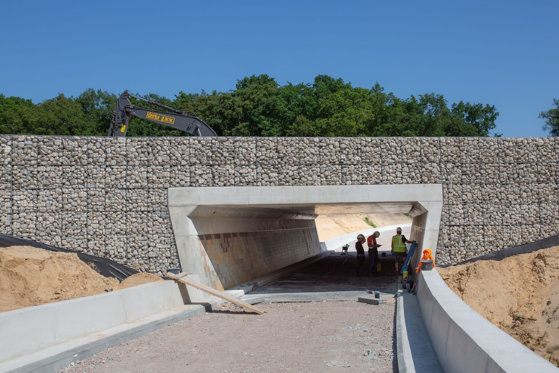 H. van Haarst heeft een fietstunnel gerealiseerd op het project “Aanleg Parklaan” te Ede. Met de Parklaan wordt de A12 met de N224 verbonden, zo zijn de kazerneterreinen en de Enkawijk straks beter bereikbaar. Als fundering en grondkering achter de schanskorven is er gekozen voor gewapende grondconstructies. De vier gewapende grondconstructies zijn aangebracht met een geogrid van het type Miragrid, geleverd door TenCate Geosynthetics en ontworpen door Nepocon.