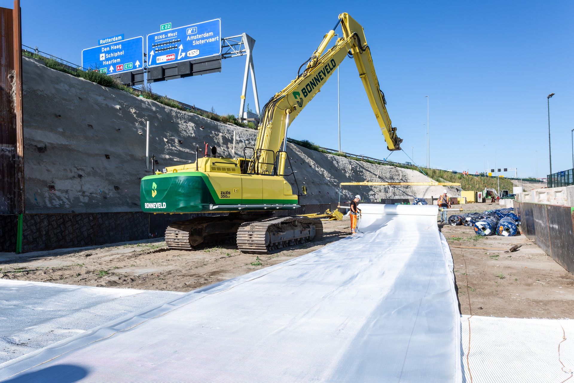De verbreding van de A10 is grotendeels gefundeerd op paalmatrassen en gewapende grondconstructies. Deze keuze was noodzakelijk omdat de snelweg op sommige plekken op slechts anderhalve meter afstand ligt van iconische gebouwen als Infinity, beter bekend als ‘De Schoen’ en Tripolis. Hierdoor was het niet mogelijk om een traditionele voorbelasting aan te brengen om zettingen in de ondergrond vooraf te realiseren.