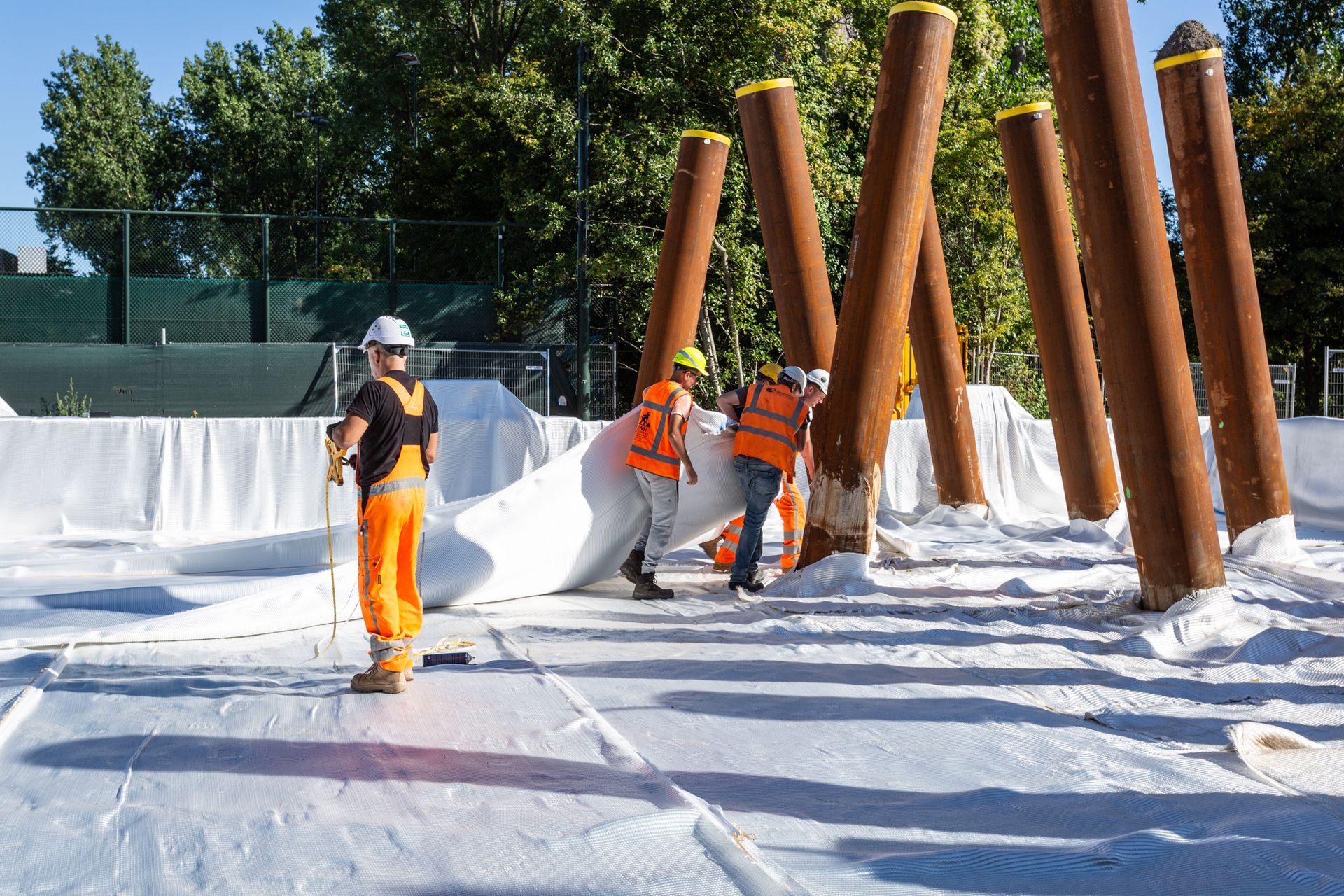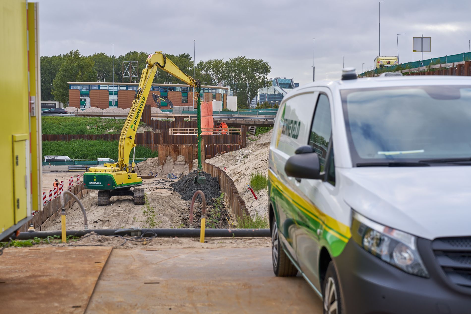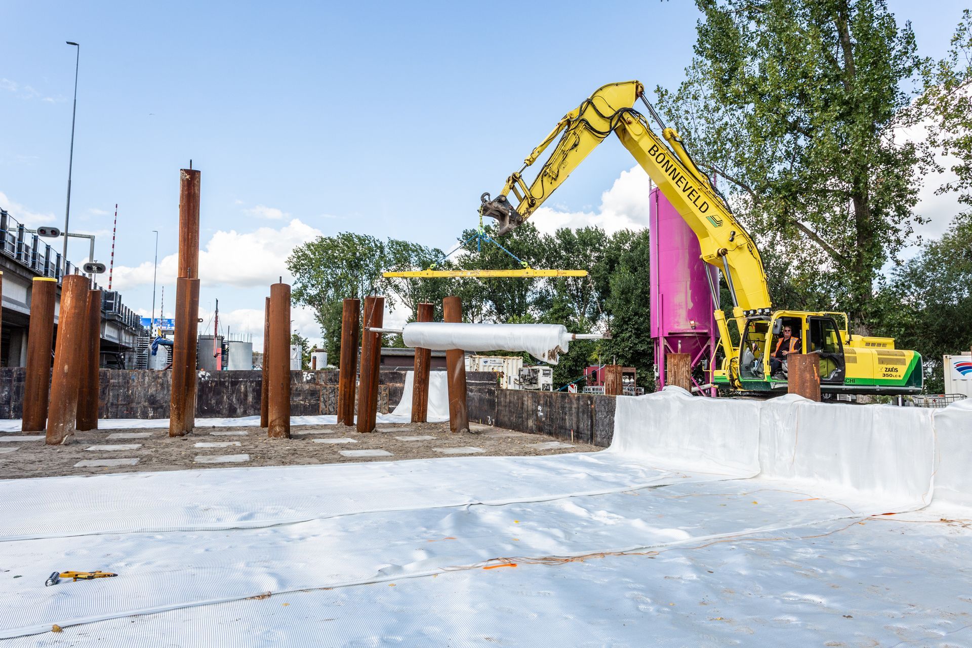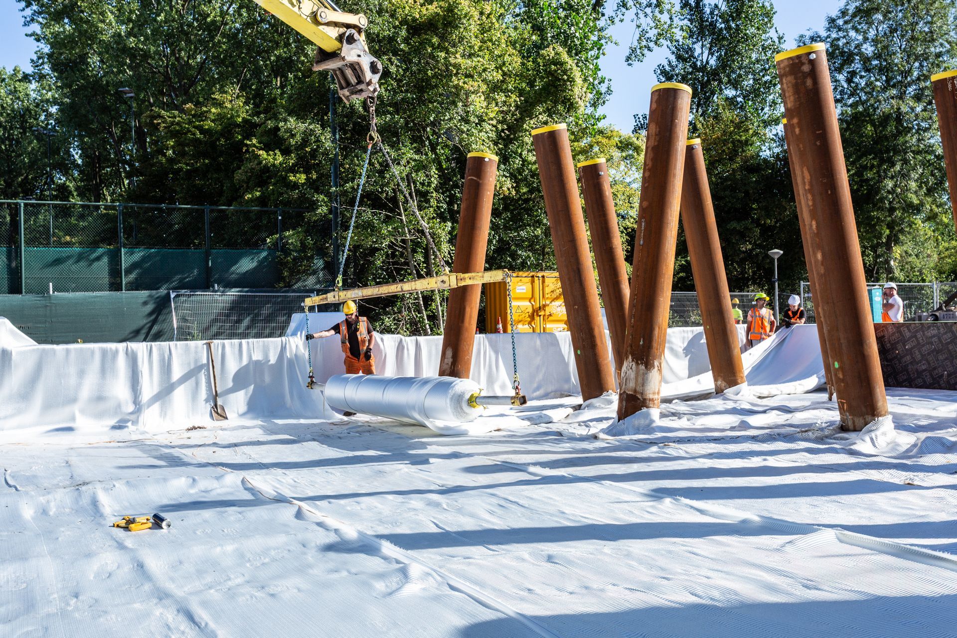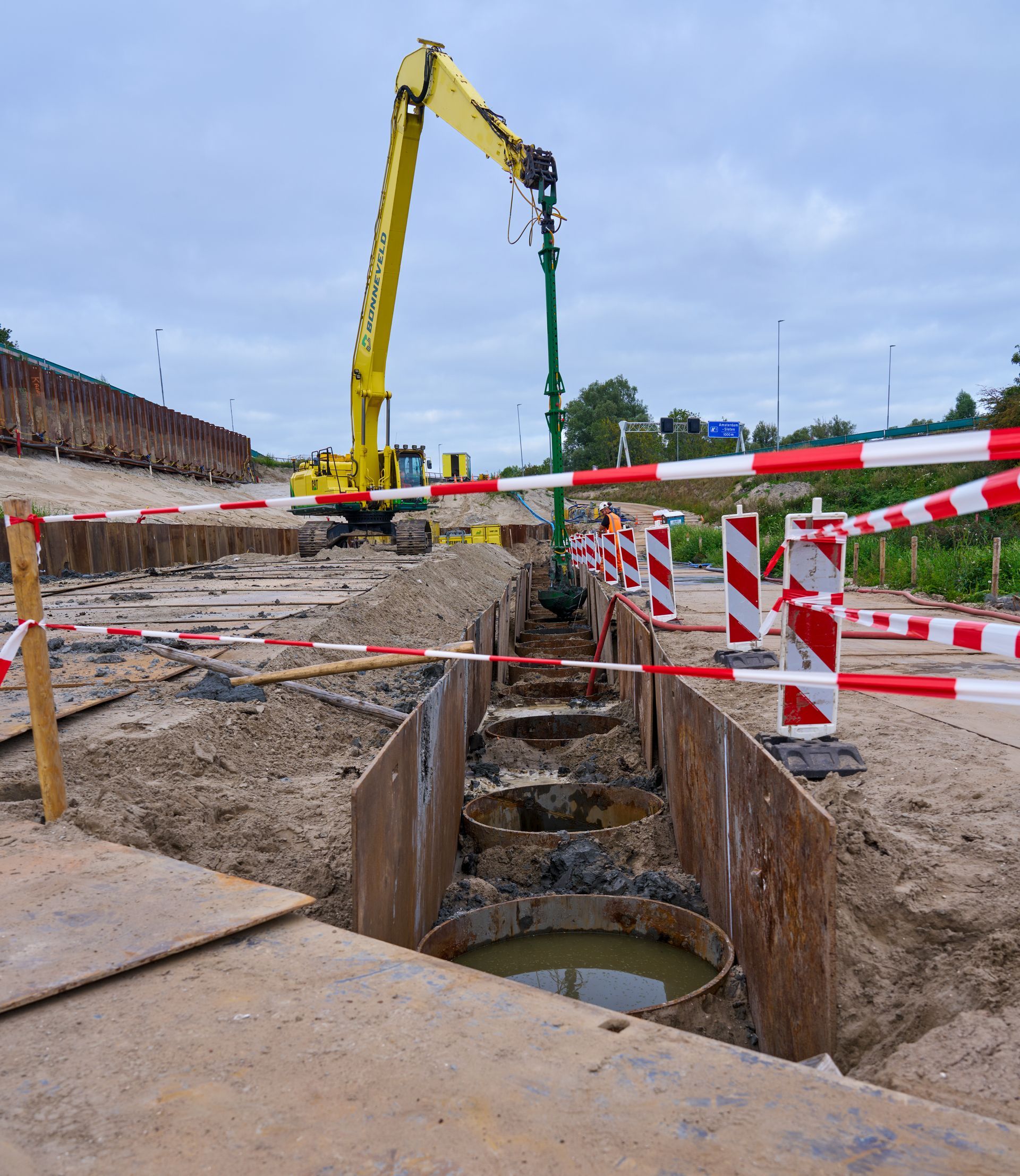Voor dit project hebben we onder meer stalen buispalen van een combiwand leeggeknepen en betonietmatten aangebracht – een mooi voorbeeld van onze brede inzetbaarheid en oplossingsgerichte aanpak.
