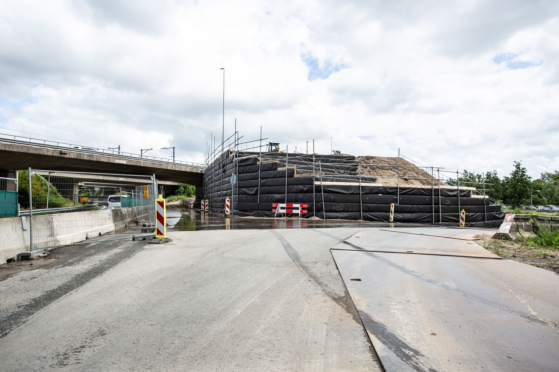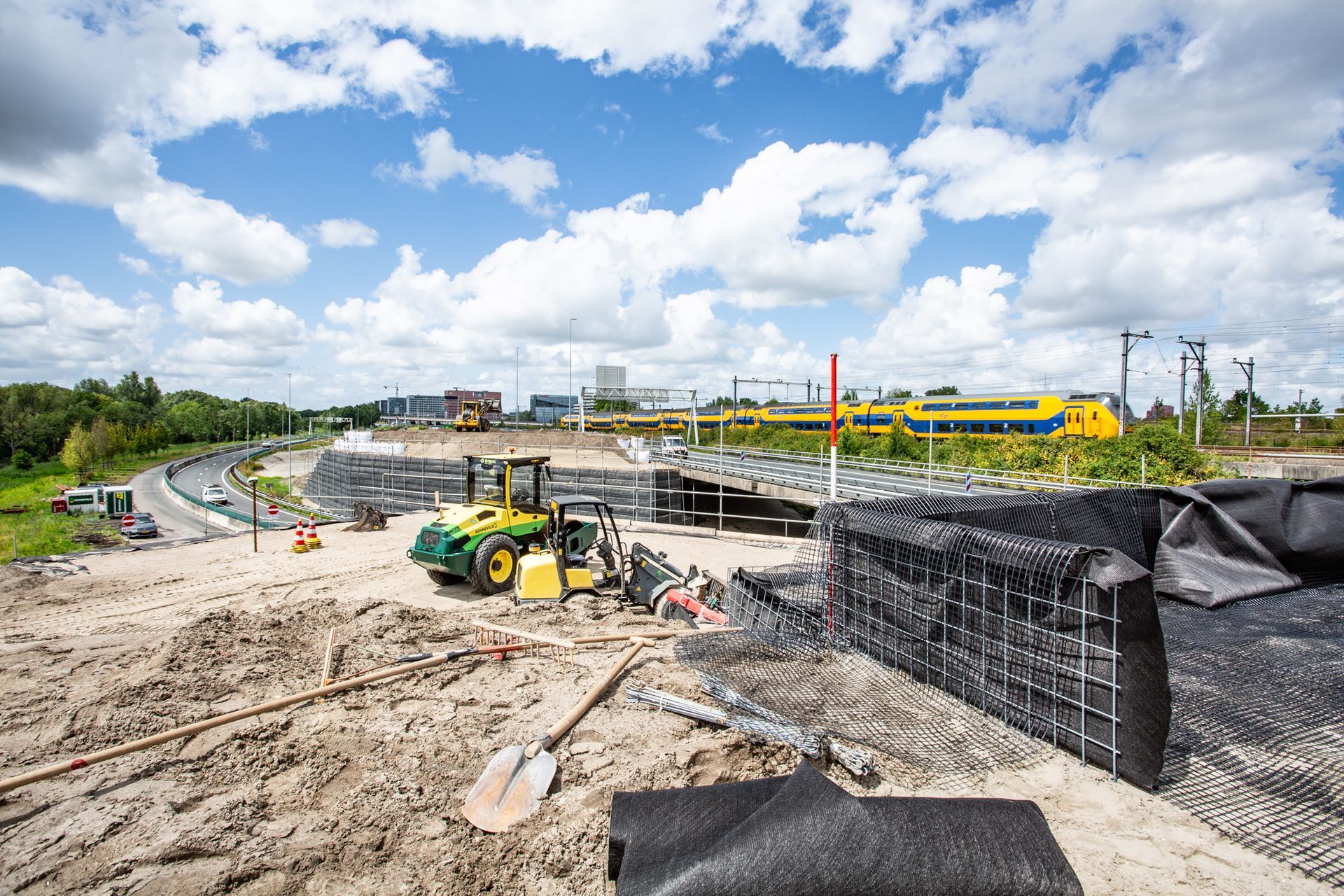 Om de ondergrond te ontlasten, worden paalmatrassen toegepast. Daarbovenop wordt de ophoging uitgevoerd met gewapende grondconstructies en keerwanden.