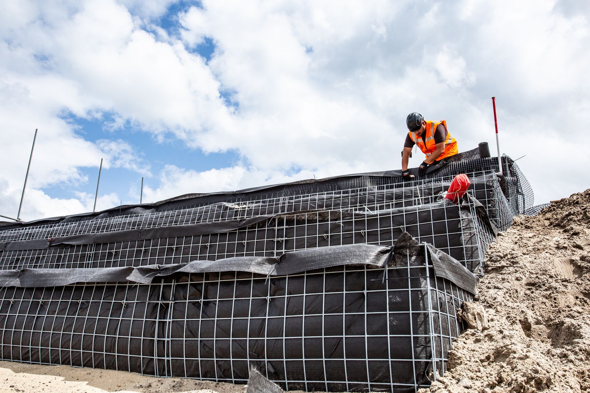 Na een grondige voorbereiding zijn we in 2024 gestart met de tijdelijke gewapende grondconstructies voor de bypass. In 2025 volgden de eerste definitieve constructies. De omvang van het project, de beperkte werkruimte en de complexe fasering maken het tot een technische uitdaging. Dit vraagt om slimme oplossingen in zowel ontwerp als uitvoering. Samen met onze werkplaats hebben we hulpmaterialen geoptimaliseerd om de werkzaamheden binnen de beperkte ruimte efficiënt uit te voeren. Door deze uitdagingen aan te gaan, hebben we als organisatie een nog hoger niveau van vakmanschap en samenwerking bereikt, een ervaring die ons sterker maakt voor toekomstige projecten.