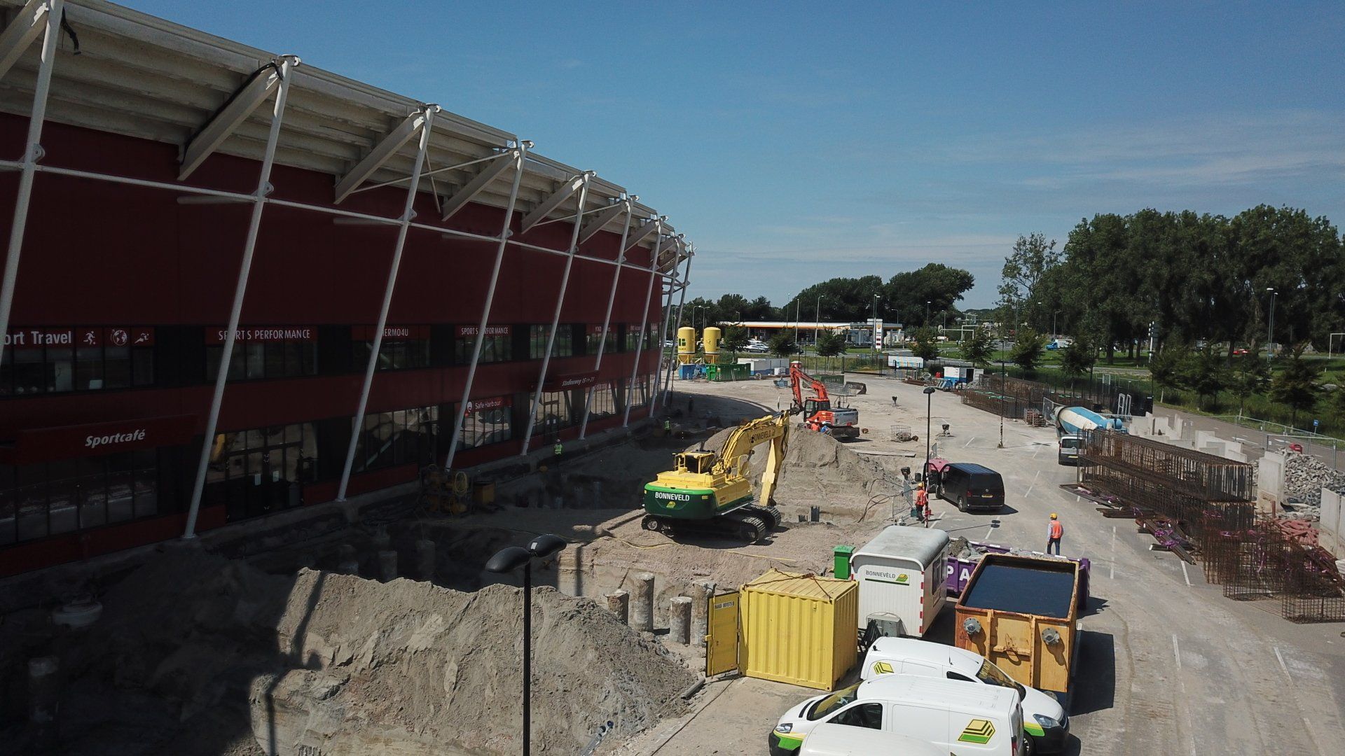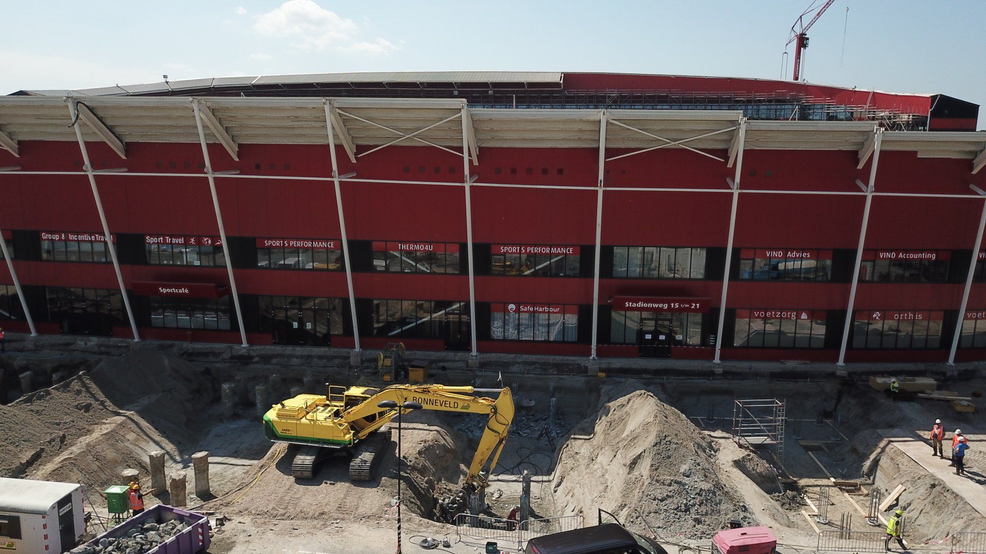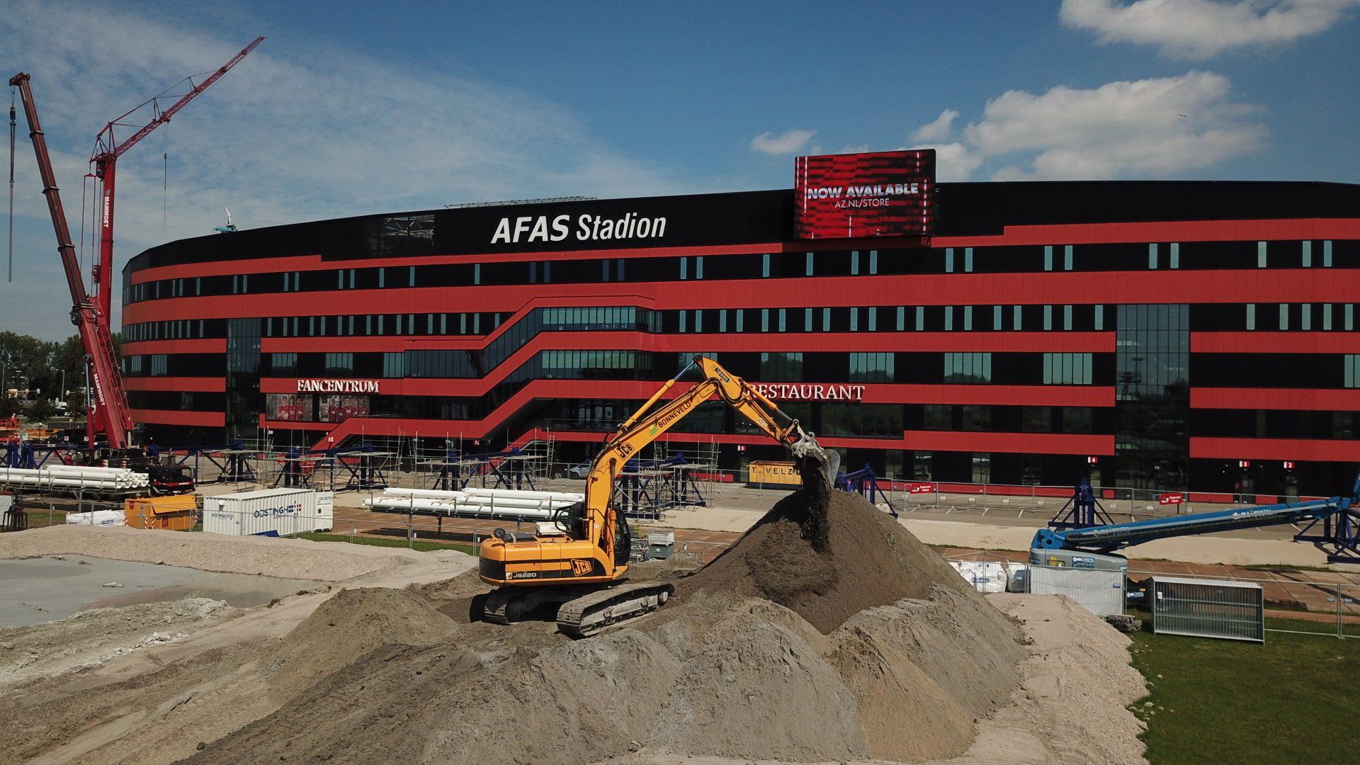verschillende (grond)werkzaamheden uit ten behoeve van het aanbrengen van de nieuwe kap van het AZ stadion te Alkmaar. Rondom het stadion worden 22 nieuwe funderingspoeren aangebracht waarop de kap wordt aangebracht. De nieuwe kap loopt vier meter verder door richting het veld dan de oude, dat biedt het publiek niet alleen meer beschutting tegen weer en wind, het schept ook ruimte om led-verlichting aan te brengen in de dakrand.