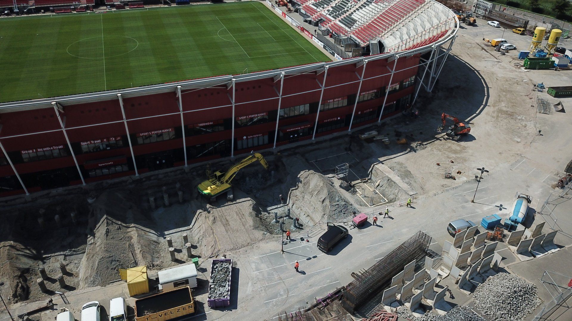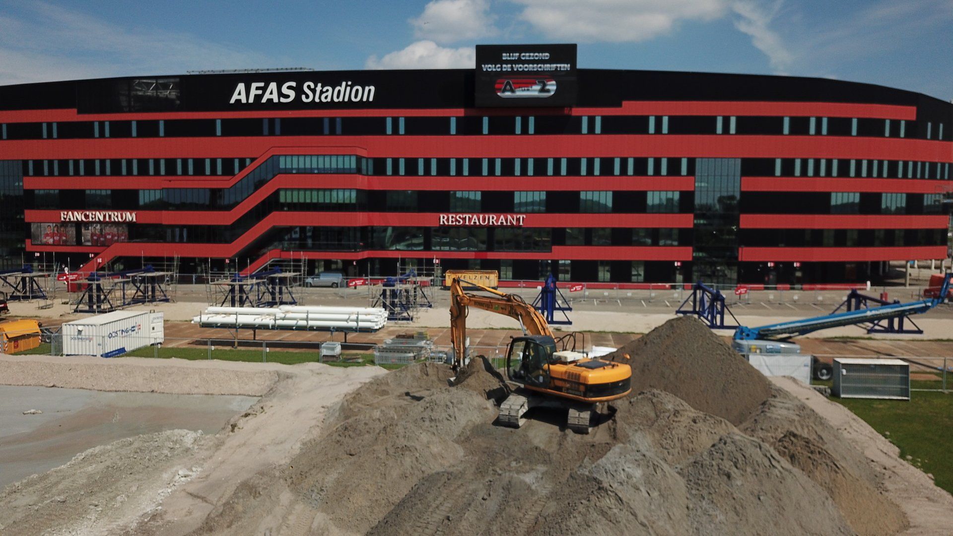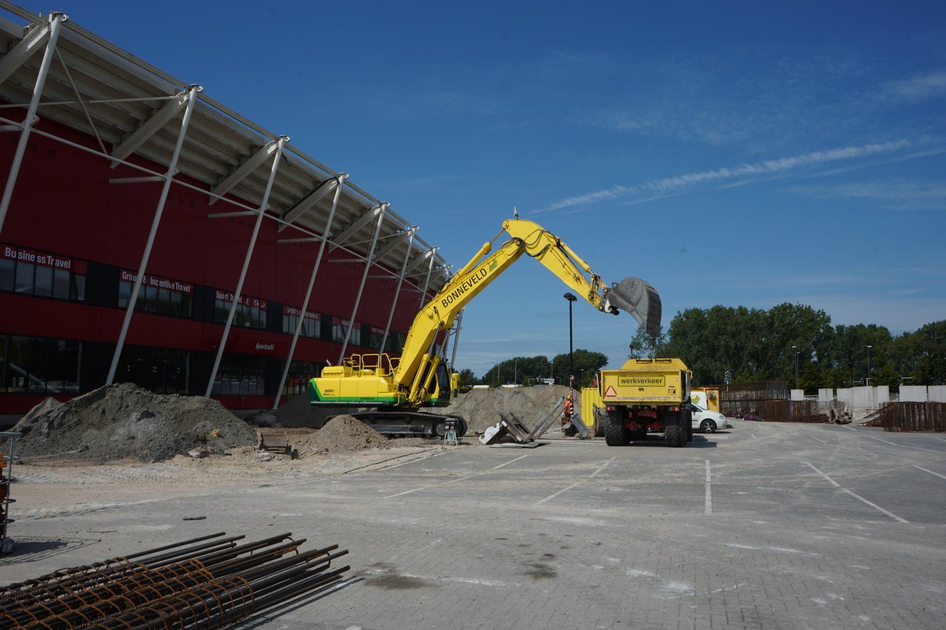 verschillende (grond)werkzaamheden uit ten behoeve van het aanbrengen van de nieuwe kap van het AZ stadion te Alkmaar. Rondom het stadion worden 22 nieuwe funderingspoeren aangebracht waarop de kap wordt aangebracht. De nieuwe kap loopt vier meter verder door richting het veld dan de oude, dat biedt het publiek niet alleen meer beschutting tegen weer en wind, het schept ook ruimte om led-verlichting aan te brengen in de dakrand.