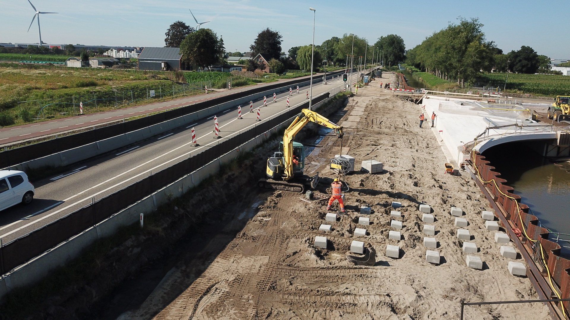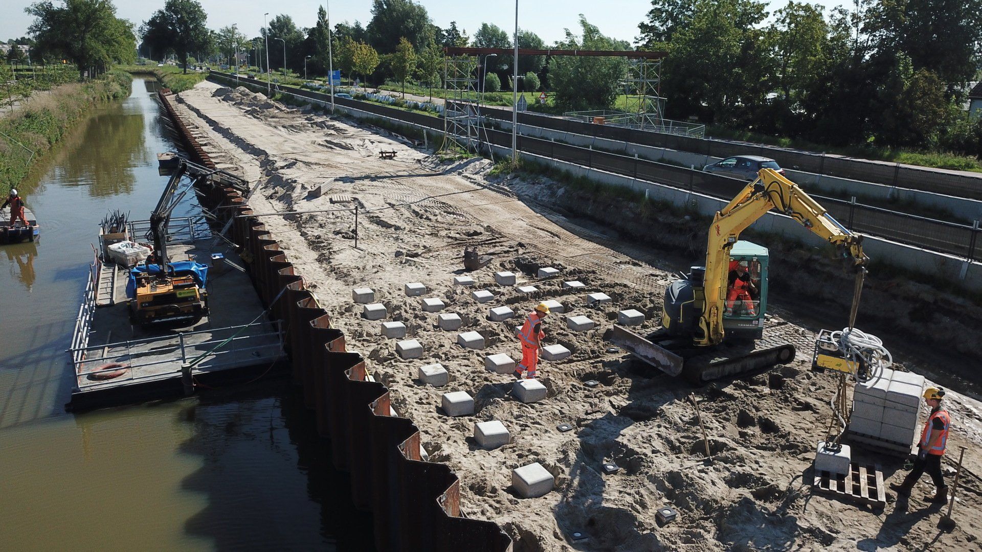 Betere doorstroming De reconstructie van knooppunt De Nieuwe Meer maakt deel uit van het programma Zuidasdok, één van de grootste infrastructurele projecten van Nederland. Dit programma heeft als doel de bereikbaarheid van Amsterdam en het noordelijke deel van de Randstad te verbeteren, zowel over de weg als met het openbaar vervoer. Met de herinrichting van het knooppunt de Nieuwe Meer door bouwcombinatie TriAX (Besix, Dura Vermeer en Heijmans) wordt de doorstroming en verkeersveiligheid in dit drukbezochte grootstedelijke gebied aanzienlijk verbeterd. Over een traject van circa twee kilometer – vanaf het knooppunt De Nieuwe Meer tot aan de aansluiting met de Amstelveenseweg – worden het knooppunt en de A10 Zuid volledig vernieuwd. In de nieuwe situatie wordt doorgaand verkeer op de A10 Zuid gescheiden van bestemmingsverkeer door de aanleg van een hoofd- en parallelstructuur. Deze sluit straks aan op de hoofd- en parallelstructuur van het project Tunnel Zuidasdok. Om dit mogelijk te maken, worden vier nieuwe beweegbare bruggen over de Schinkel gebouwd, de A10 Zuid verbreed en het onderliggend wegennet – waaronder de Amstelveenseweg – aangepast. Ook de bediening en besturing van de Schinkelbrug worden aangepast, zodat deze straks op afstand kan worden bediend. Paalmatrassen en gewapende grondconstructies De verbreding van de A10 is grotendeels gefundeerd op paalmatrassen en gewapende grondconstructies. Deze keuze was noodzakelijk omdat de snelweg op sommige plekken op slechts anderhalve meter afstand ligt van iconische gebouwen als Infinity, beter bekend als ‘De Schoen’ en Tripolis. Hierdoor was het niet mogelijk om een traditionele voorbelasting aan te brengen om zettingen in de ondergrond vooraf te realiseren. Om de ondergrond te ontlasten, worden paalmatrassen toegepast. Daarbovenop wordt de ophoging uitgevoerd met gewapende grondconstructies en keerwanden. Onze rol als Bonneveld Gewapende Grondconstructies BV In opdracht van bouwcombinatie TriAX is Bonneveld Gewapende Grondconstructies BV mede verantwoordelijk voor de uitwerking van het ontwerp, de levering en de uitvoering van in totaal acht definitieve en vijf tijdelijke constructies. Deze bestaan uit paalmatrassen, gewapende grondconstructies en combinaties daarvan. Onze betrokkenheid bij het project begon in 2022, tijdens de tenderfase, en liep daarna door in de voorbereidingsfase. Het ontwerp van TriAX is mede uitgewerkt door Joosten Concepts , een samenwerkingsverband tussen Joosten, Geologics en Bonneveld . Deze samenwerking, actief sinds 2021, heeft zich al bewezen op diverse grote infraprojecten zoals Groningen Ring-Zuid , RijnlandRoute , de nieuw e A16 , A9 BaHo en meerdere regionale projecten. Dankzij deze gezamenlijke ervaring weten we precies wat we aan elkaar hebben en kunnen we in het ontwerpproces eenvoudiger tot optimalisaties komen. De korte communicatielijnen binnen Joosten Concepts zorgen bovendien voor praktische, uitvoerbare ontwerpen waarin al vroeg rekening wordt gehouden met de uitvoering. Door al in de ontwerpfase intensief samen te werken met TriAX, kunnen we de uitvoerbaarheid waarborgen en kansen en risico’s vroegtijdig signaleren. Na een grondige voorbereiding zijn we in 2024 gestart met de tijdelijke gewapend e grondconstructies voo r de bypass. In 2025 volgden de eerste definitieve constructies. De omvang van het project, de beperkte werkruimte en de complexe fasering maken het tot een technische uitdaging. Dit vraagt om slimme oplossingen in zowel ontwerp als uitvoering. Samen met onze werkplaats hebben we hulpmaterialen geoptimaliseerd om de werkzaamheden binnen de beperkte ruimte efficiënt uit te voeren. Door deze uitdagingen aan te gaan, hebben we als organisatie een nog hoger niveau van vakmanschap en samenwerking bereikt, een ervaring die ons sterker maakt voor toekomstige projecten. Tot medio 2026 werken we in een continue bouwstroom, waarbij steeds minimaal twee grondconstructies gelijktijdig worden opgebouwd. Samen sterk met Bonneveld Aannemingsbedrijf BV Dankzij het moderne en veelzijdige machinepark van Bonneveld Aannemingsbedrijf BV kunnen wij voor iedere constructie het meest geschikte materieel inzetten. De nauwe samenwerking tussen beide bedrijven zorgt voor flexibiliteit, efficiëntie en duidelijke meerwaarde voor onze opdrachtgever. Naast materieel delen we ook kennis en ervaring op het gebied van grondverzet en uitvoering. Zo denken we actief mee over optimalisaties die verder gaan dan het leveren en aanbrengen van constructies. Voor dit project hebben we onder meer stalen buispalen van een combiwand leeggeknepen en betonietmatten aangebracht – een mooi voorbeeld van onze brede inzetbaarheid en oplossingsgerichte aanpak. Trots op onze bijdrage Wij zijn trots om als partner van TriAX onderdeel te zijn van dit indrukwekkende project. Voor Bonneveld is dit bovendien het grootste project tot nu toe – een mijlpaal waar we met ons hele team met recht trots op zijn.