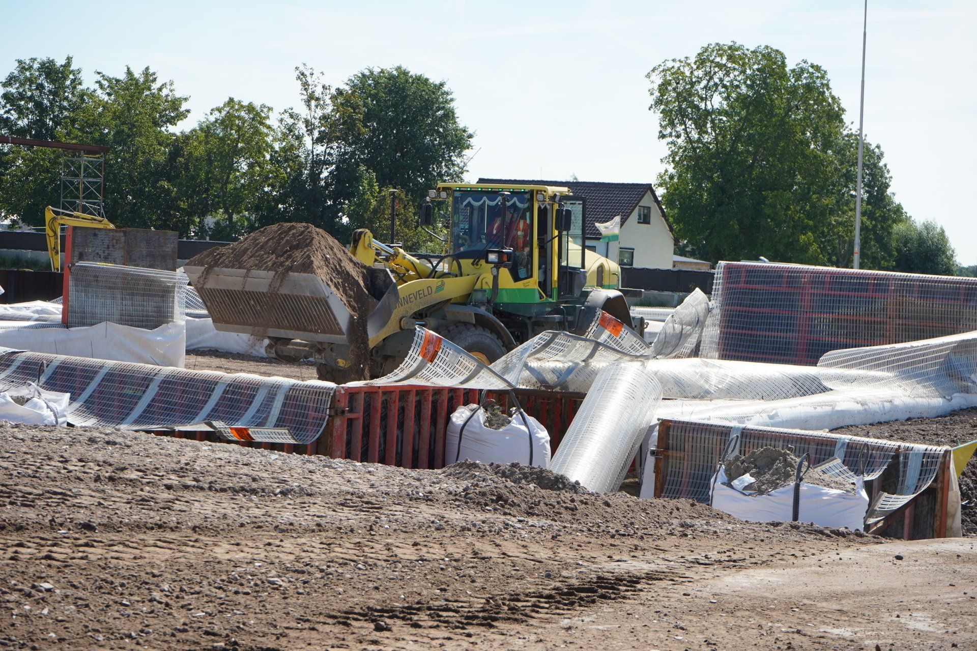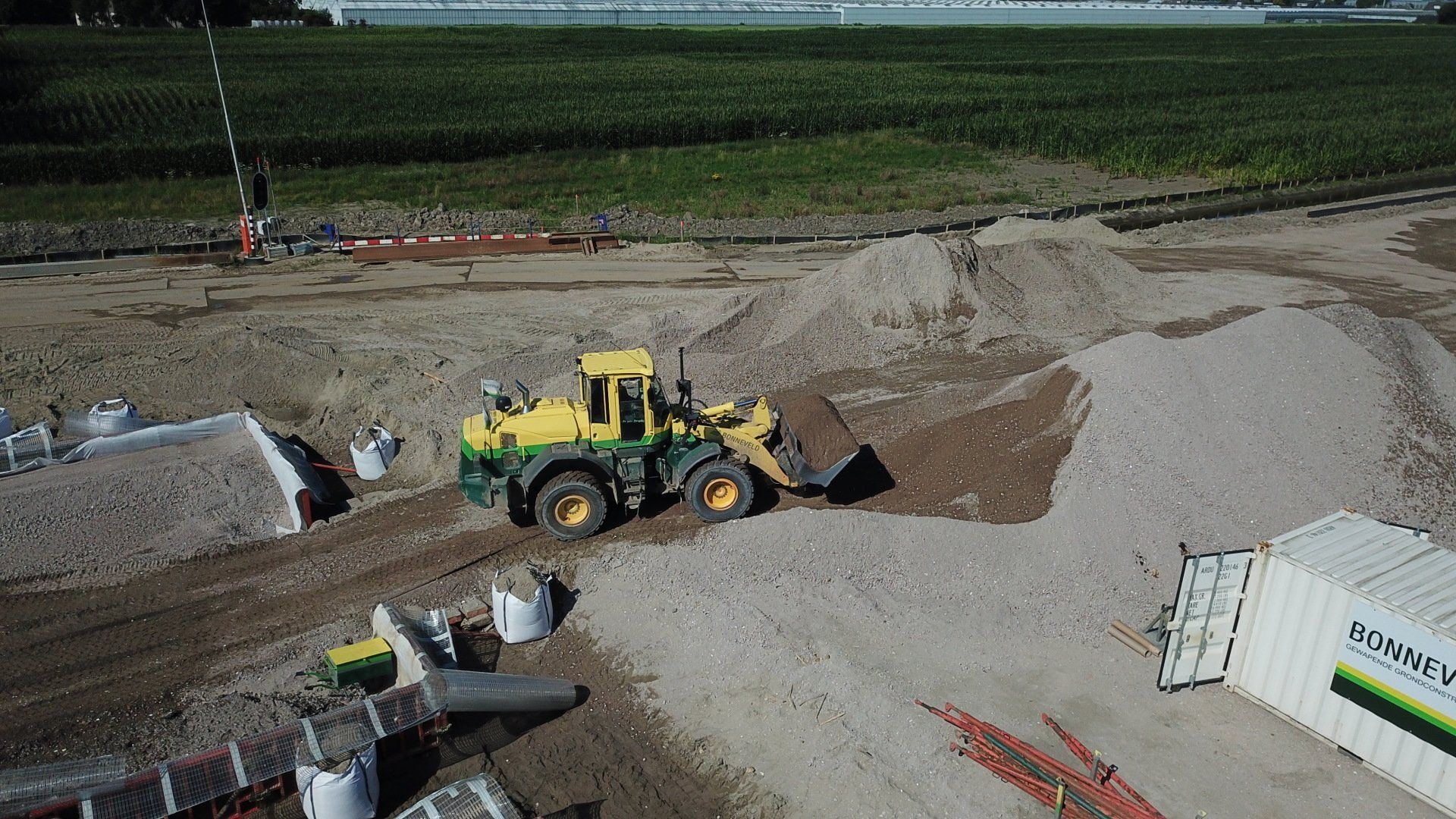 De Silo’s op Zeeburgereiland krijgen een nieuwe bestemming. Van industrieel erfgoed naar een levendige ontmoetingsplek met cultuur, horeca en een groen dakpark, Hier komt modern design samen in een duurzame toekomst. In opdracht van Vink Bouw mochten we de grondwerkzaamheden en de bouwplaatsinrichting verzorgen van de transformatie van de drie voormalige waterzuiveringssilo’s. Onderdeel van de bouwplaatsinrichting is de tijdelijke demping van een watergang om zo voldoende bouwterrein beschikbaar te maken. De transformatie van de silo’s is een project met hoge duurzaamheidsambities. Het ontwerpcertificaat BREEAM Outstanding is al binnen en ook de uitvoering ligt langs een strenge duurzaamheidslat. En Bonneveld draagt daar letterlijk en figuurlijk haar steentje aan bij, Een deel van het puingranulaat is afkomstig van een breker in de buurt, een belangrijk deel is afkomstig uit Delft van een ander werk van Vink Bouw. Aan het einde van de rit gaan we de bouwplaats weer opruimen. Puingranulaat gaat dan weer door naar een andere bouwplaats, en als daar geen plek voor is, naar de breker. Vloerplaten die goed genoeg zijn, gebruiken we ook zo lang mogelijk door. Is de bouwkeet weg dan zullen we als laatste werk de watergang terugbrengen in oude staat en met de grond het bouwterrein opvullen.