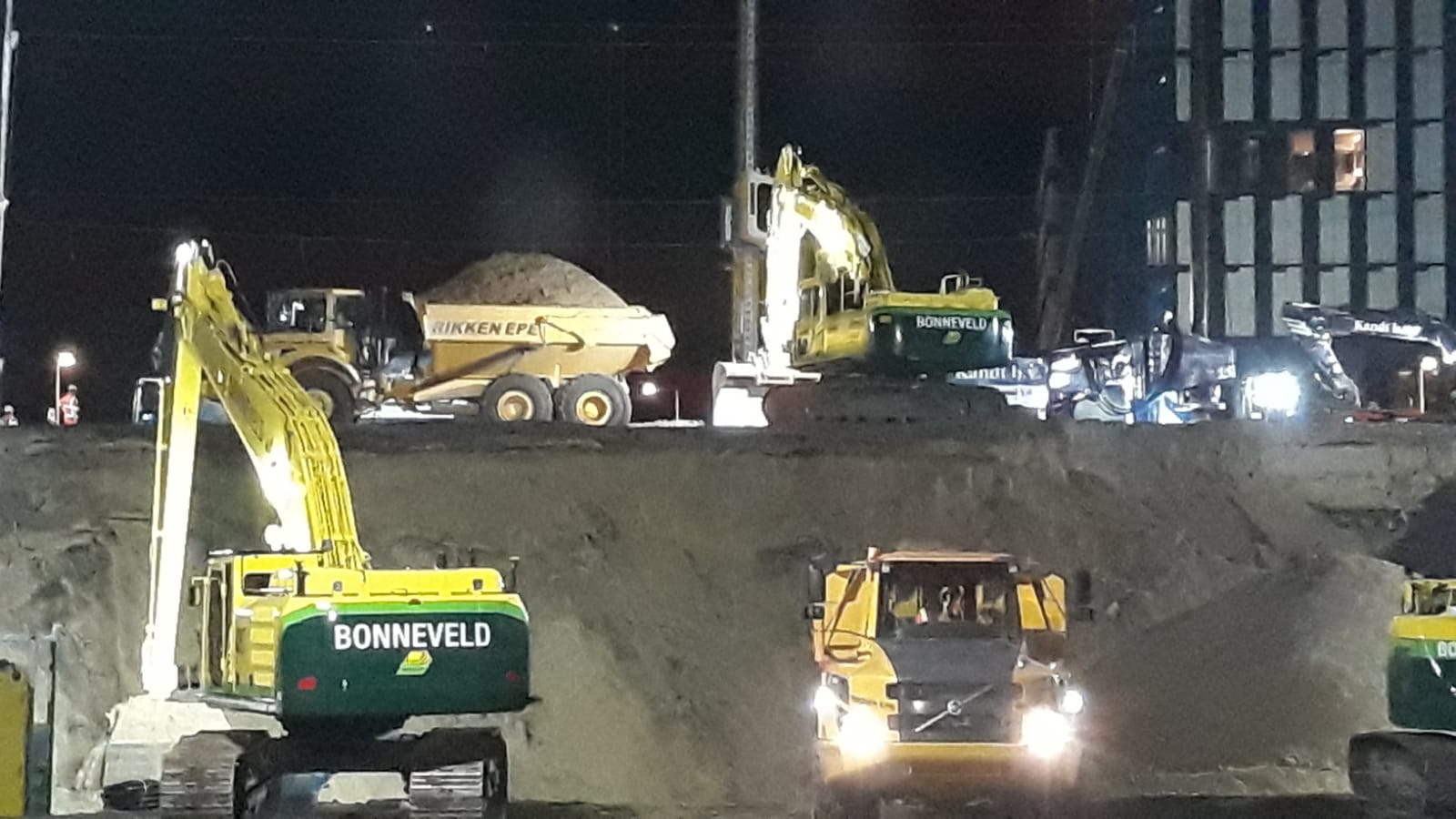 werkt dag en nacht op de 16-daagse trein vrije periode (TVP) bij de Amstelstroomlaan te Amsterdam. In opdracht van BAM Infra BV